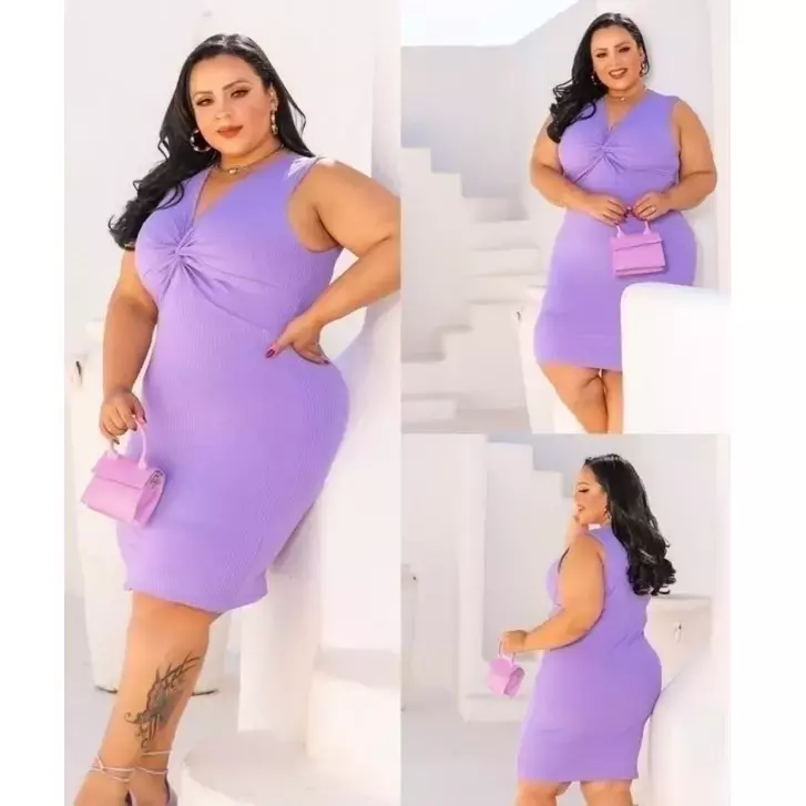 Kit 2 Vestidos Femininos Plus Size Midi Decote em V Nozinho - Suplex Canelado Super Confortável
